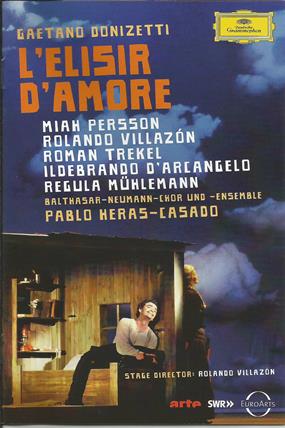 דוניצטי- האופרה "שיקוי אהבה". במאי: רולנדו וילאזון. הפקה מבית האופרה של באדן-באדן. תזמורת ומקהלת בלתזאר נוימן.מנצח: פאבלו הראס-קסאדו. די.וי.די "דויטשה גרמופון".